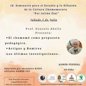 Este será uno de los temas que desarrollará, el próximo sábado 5 de julio el Profesor Gonzalo Abella, en el marco del segundo encuentro del Seminario para el estudio de la cultura chamamecera “Paí Julián Zini”, un tema que, a no dudarlo acaparará la atención , especialmente en el sector docente ya que es muy sensible para toda la entrerrianada y, sobre el que se ha escrito mucho ya que es parte importante en la historia de esta provincia.